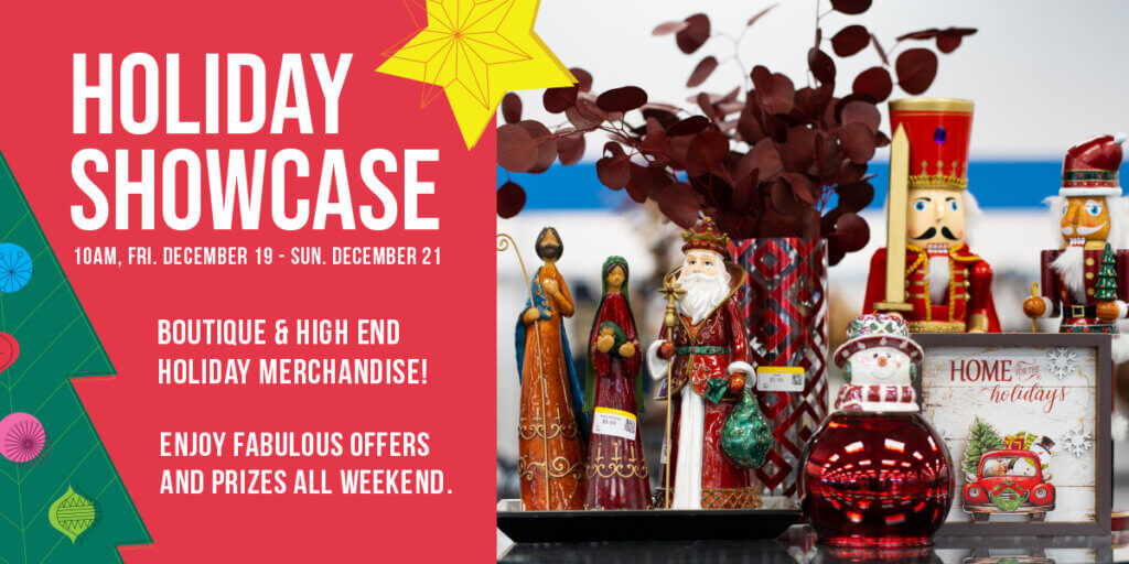 We’re celebrating the season with special Holiday Showcases on Dec. 19-21! Shop for boutique and high-end holiday merchandise at our Holiday Showcase locations! All weekend long, enjoy special offers, exclusive deals, and exciting prize drawings, including your chance to WIN A TV! The first 50 shoppers in line each day will receive a $10 merchandise voucher for a future visit.